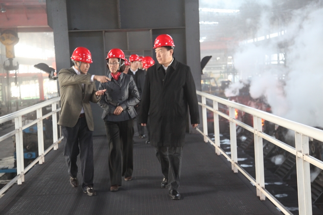 3月28日,遼寧省副省長劉強(qiáng)到公司視察,鞍山市代市長吳忠瓊等相關(guān)領(lǐng)導(dǎo)陪同,總經(jīng)理張鐵漢匯報生產(chǎn)經(jīng)營情況。